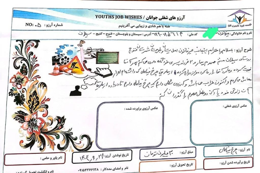 در استان سیستان بلوچستان .شهرستان فنوج. روستای سبیلان مادر بزرگی به اسم میرخاتون زندگی می کند که شوهر بیمار و از کار افتاده و پسرش فوت شده و عروسش ازدواج مجدد کرده است . و بچه های خود را رها کرده و حال میرخاتون از آن سه تا طفل معصوم نگه داری میکند که محصل و دانش آموز می باشند. میرخاتون با چرخ خیاطی کهنه ای که در اختیار داشته امرار معاش می کرده و حال چرخ خیاطی اش خراب و شکسته می باشد و الان ارزو دارد که دوباره بتواند با چرخش امرار معاش کند. تا با آن زندگی خود و آن طفل های معصوم رو بگذراند .