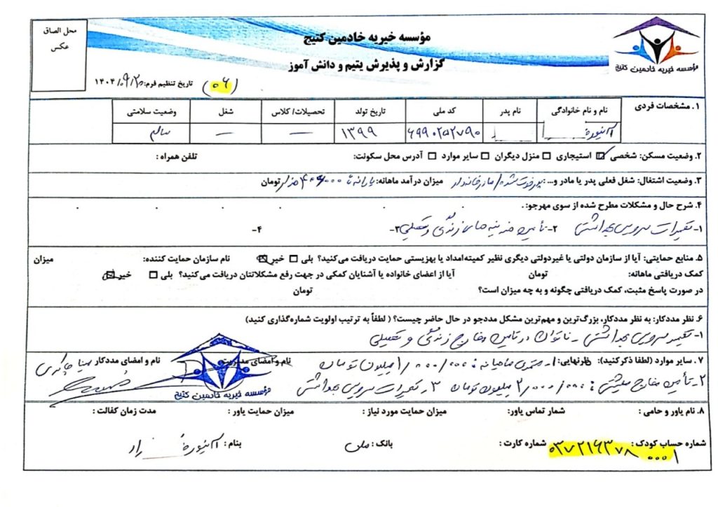 آینور کودکی یتیم که در روستای محترم اباد در یک خانه ای ناامن زندگی می کند . نبود سرویس بهداشتی مناسب (نیاز به تعمیر) از جمله مشکلات این کودک است . جالبه بدونید هیچ کسی تاکنون حمایتش نکرده .
