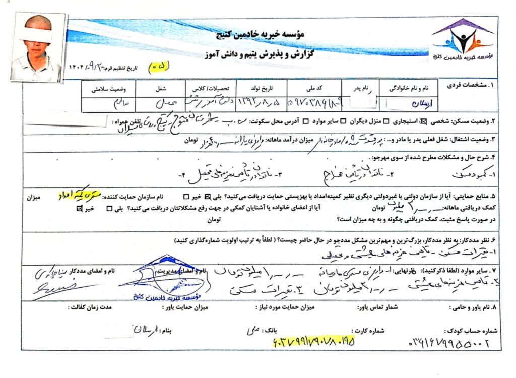 ارسلان یک کودک یتیم است