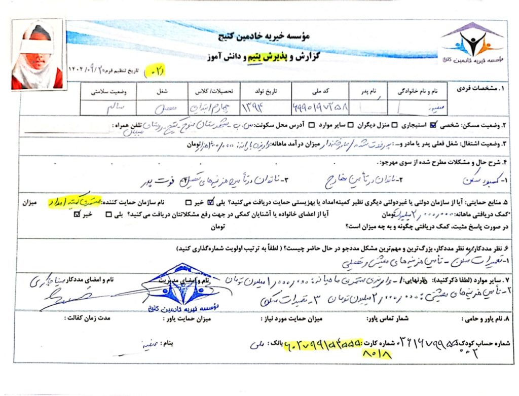 اکنون یسنا منتظر حمایت مستمر شما یاوران گرامی است . تا بتواند بخش کوچکی از نیازهای روز مرگی اش را تامین کند .